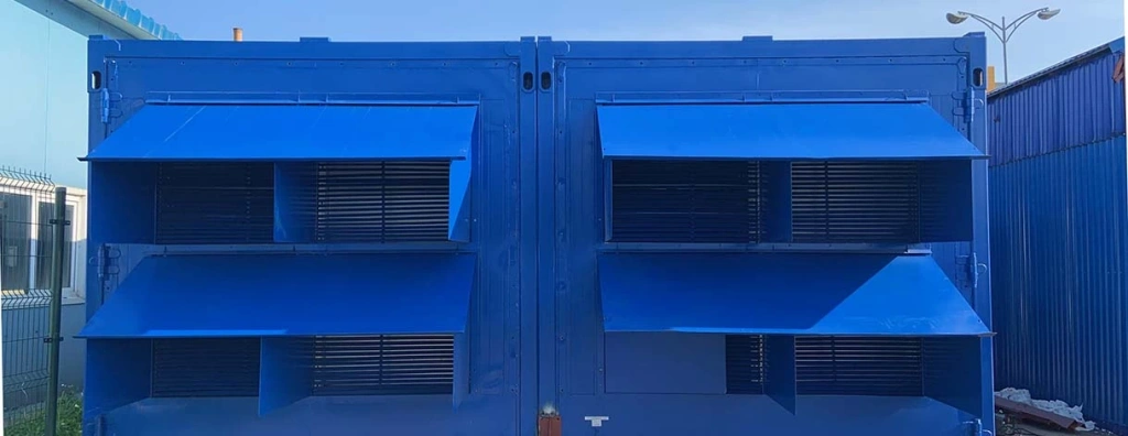 - дизель-генераторы, входящие в состав энергоцентра, размещаются в отдельно стоящих контейнерах, изготавливаемых в двух вариантах: из сэндвич-панелей и цельнометаллические,